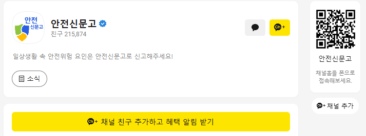 안전신문고 카카오톡 채널에서도 신고할 수 있습니다.