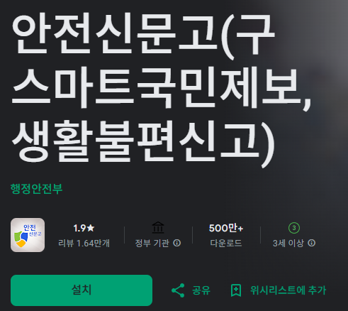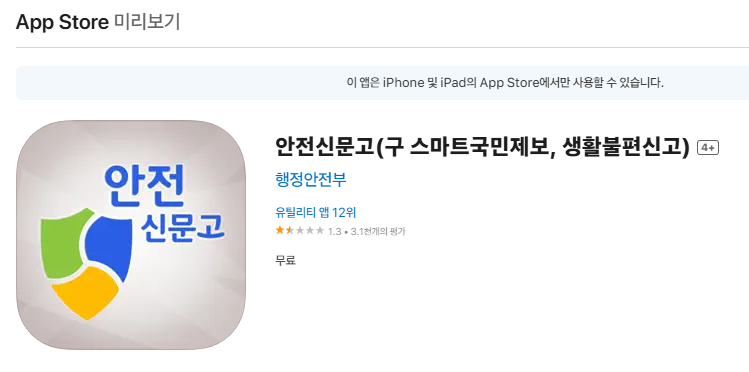 구글 플레이스토어(Android) 또는 앱스토어(iOS)에서 ‘안전신문고’ 검색 후 설치