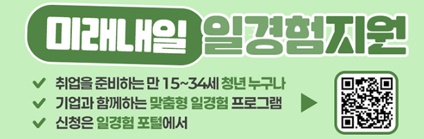 ‘미래내일 일경험 지원’을 통해, 오늘보다 더 나은 내일을 준비하세요.