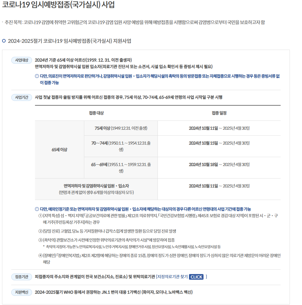 이번 코로나19 무료 예방접종은 고위험군을 대상으로 진행됩니다.