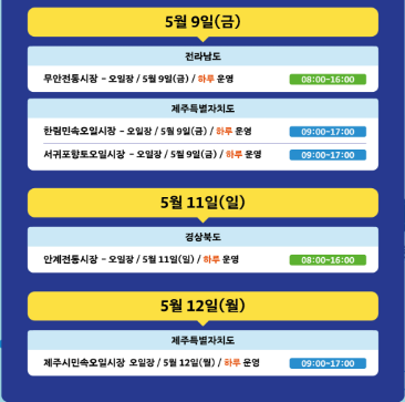 ※ 예: 월요일 정기 휴무 시장은 5월 12일 운영하지 않을 수 있음