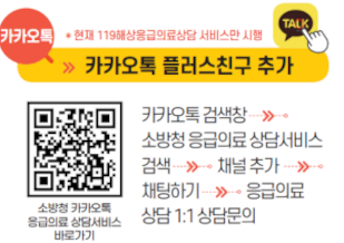 | 카카오톡 | ‘소방청 응급의료 상담서비스’ 플러스친구 |