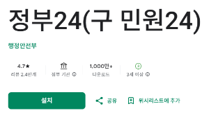 정부24 앱 설치 후 동일한 방식으로 이용 가능