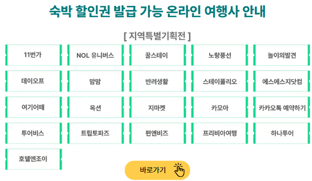 특히, 올해는 특별히 ‘지역 특별기획편’이 마련되어 지역별 특화 숙소 및 관광상품과 연계하여 할인권을 사용할 수 있도록 했습니다.